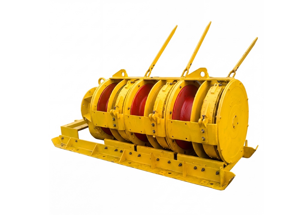 Скреперная лебедка 55ЛС3СМА трехбарабанная с соосным расположением электродвигателя мощностью 55 кВт предназначена для доставки отдельной от массива горной массы при подземной разработке полезных ископаемых. Лебедки используются также на открытых разработках и являются средством механизации складирования сыпучих и кусковых материалов. Лебедки иногда применяются для передвижения ж/д составов и плавучих средств.